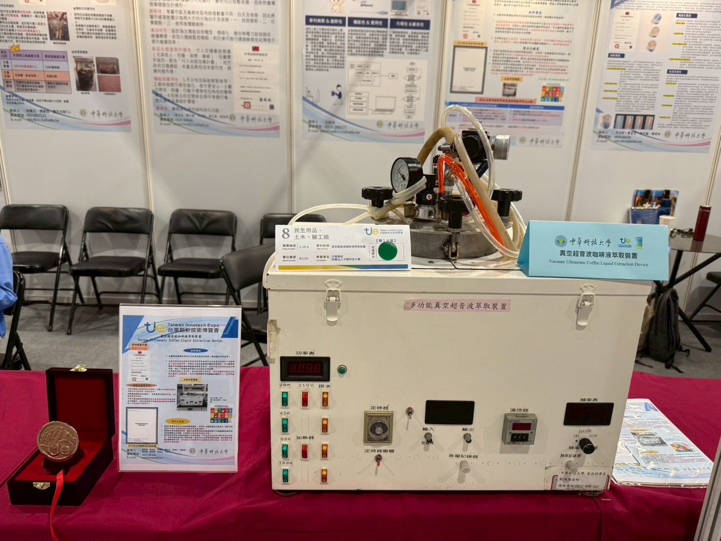 35 狂賀!!中華科技大學生物科技系劉滿海老師2025台灣創新博覽會銅牌獎 普通校園公告2025-10-20潘麗敏 公告 本系劉滿海老師參加2025台灣創新博覽會~發明競賽榮獲銅牌 真空超音波咖啡液萃取裝置,劉滿海、鍾竺均 台北校區健康科技學院生物科技系 附件照片 學校首頁 公告列表