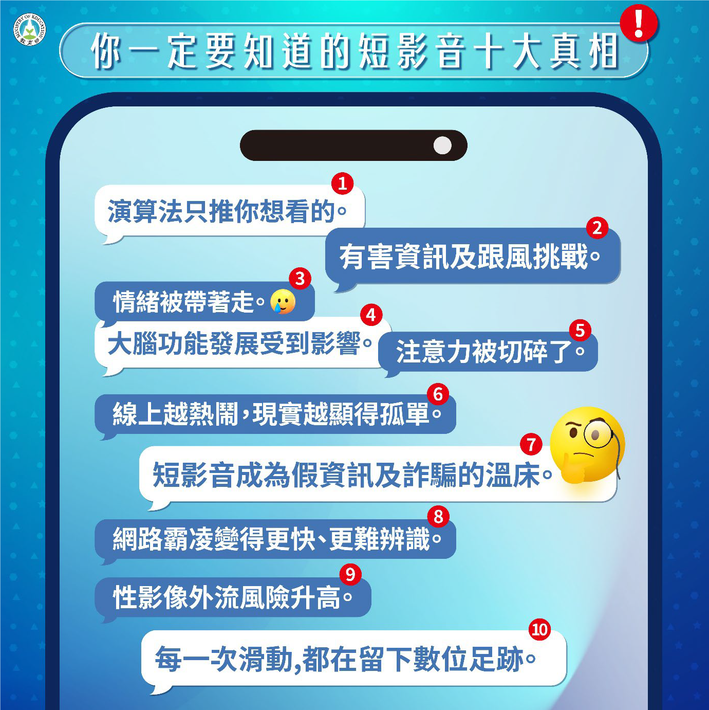 宣導主題:「拒絕短影音風險:別被演算法牽著走,思辨、查證、要求助」