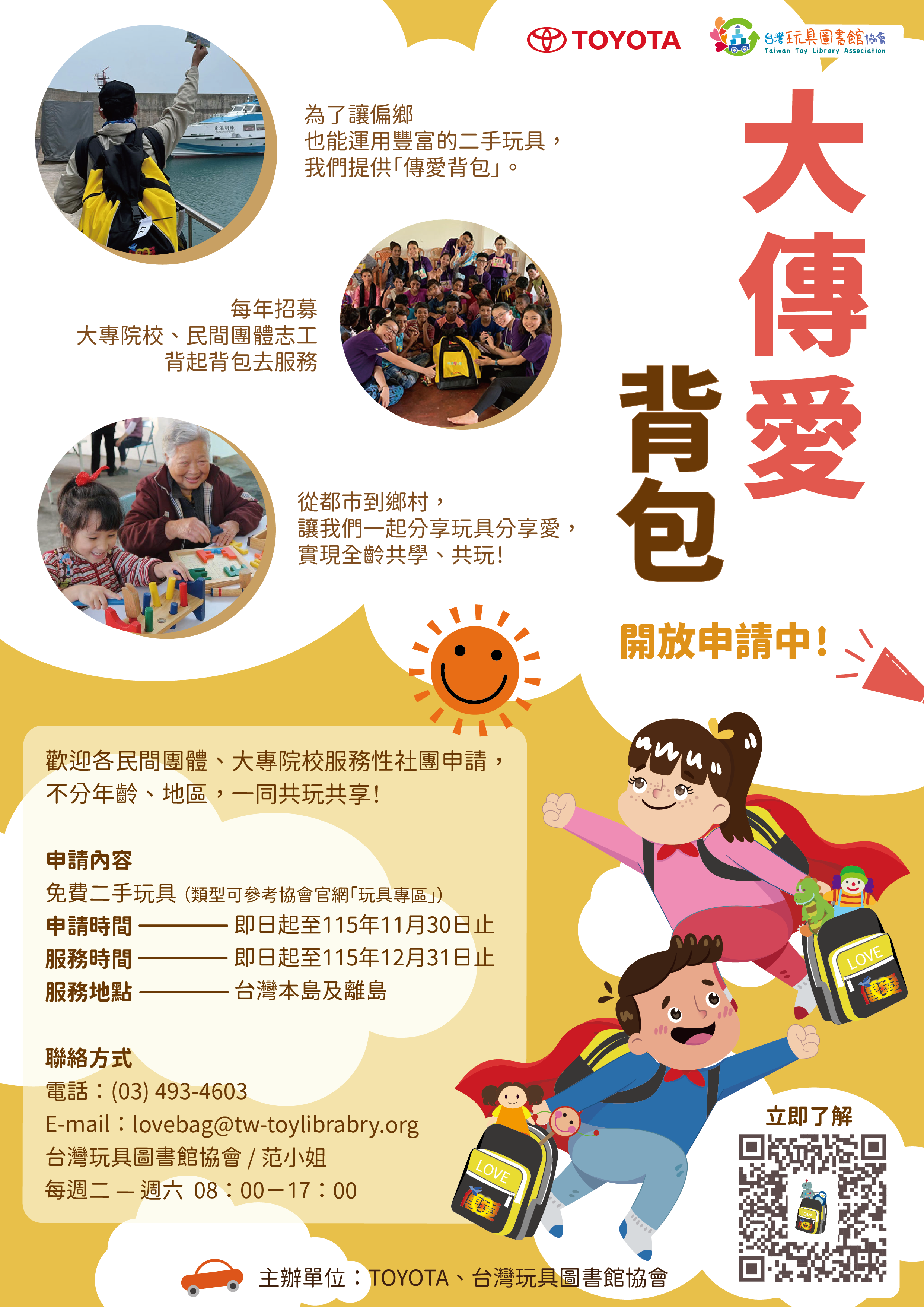 台灣玩具圖書館協會與TOYOTA企業合作辦理2026年度大傳愛背包計畫