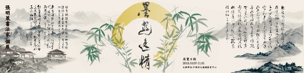 簡 介 中華科技大學106學年駐校藝術家 中華科技大學105學年駐校藝術家 馬來西亞國際華人書展邀請展及講學 第十五屆全國美展邀請展(國畫部份) 邀請湖北關帝文化交流訪台展 台北縣立文化中心特邀個展 唐墨畫會卅週年紀念展 戊寅台灣書法展 彰化社教館邀請個展